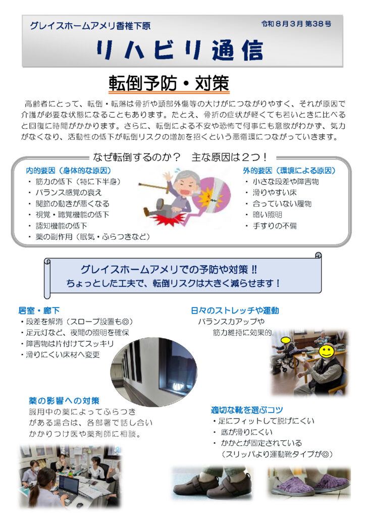 さて、今月のリハビリ通信のテーマは「転倒予防・対策」についてです。